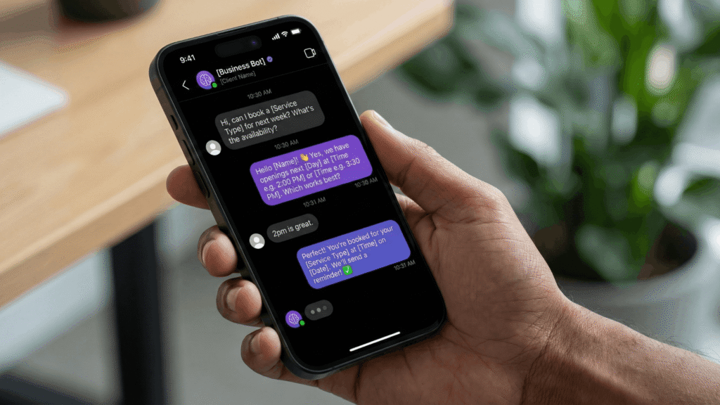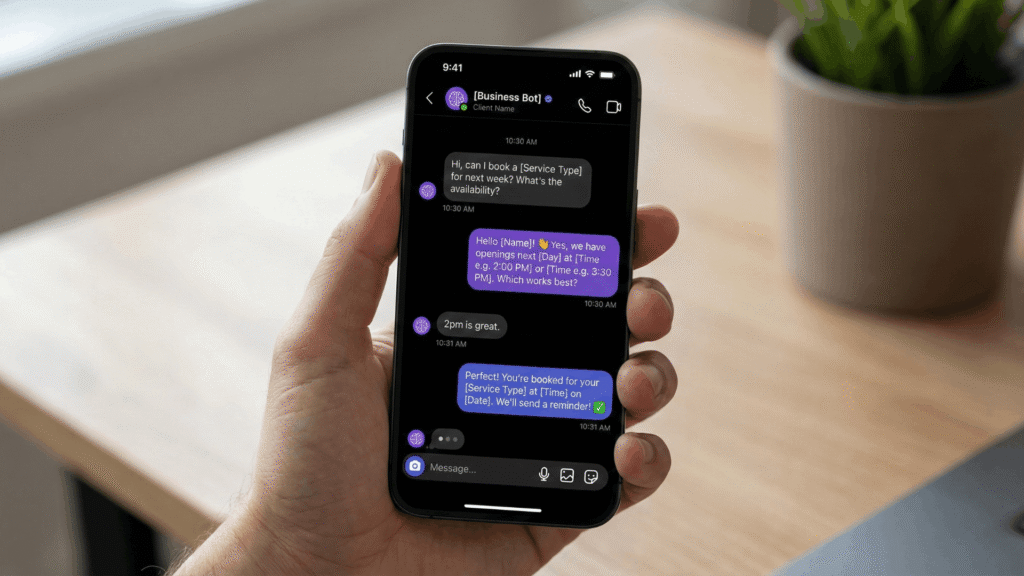 Clients can book appointments directly through DMs. AI checks availability, offers times, and confirms – no app switching required.